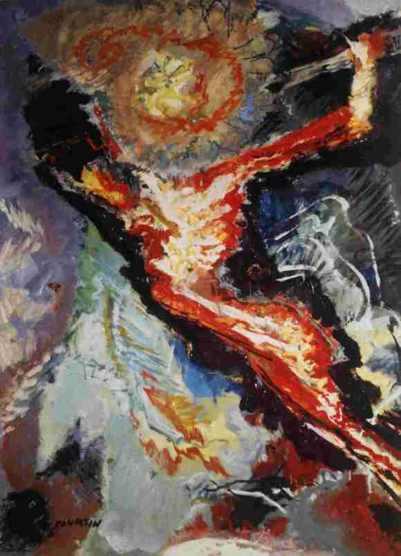 La Foudre de la crucifixion a traversé la nue, le firmament s’est ouvert, le ciel a été fécondé et les saisons généreuses ont fondu sur la terre. Lorsque la pierrre du tombeau a été roulée, lorsque le vide crucial a été dévoilé, le regard ne plonge pas sur la noire absence mais sur la lumineuse présence : la résurrection du jour.